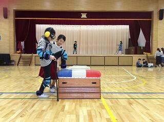 正しい馬跳びの仕方を教わっています。