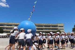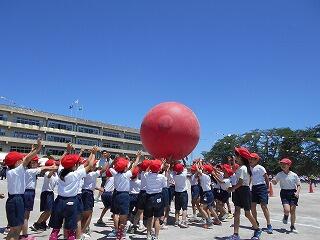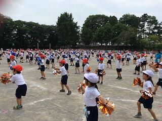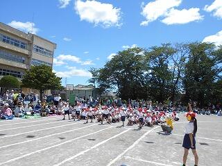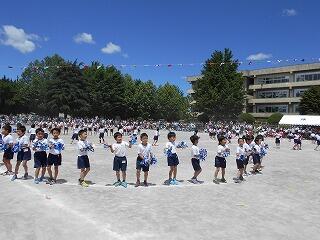 全力で走った50m走,とびきり元気に踊ったダンス「やってみよう!!!」,代表選手ががんばった紅白対抗リレー,みんなで力を合わせた大玉送り,最後の力を振り絞った玉入れ,声を張り上げた応援合戦などなど子どもたちは今までの練習の成果を発揮してよくがんばりました。