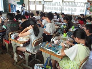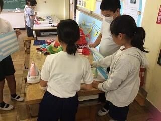 今日は,万国旗の洗濯とアイロンがけです。休み時間でしたが,多くの児童が協力し,1枚1枚丁寧にシワをのばしていました。