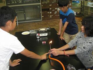 本日は京葉ガスの方を講師としてお招きし,「ものの燃え方」について学習しました。