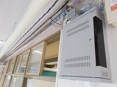 これまでにも何度かお知らせをしています通り,来年度より「柏市GIGAスクール」が始まります。校舎内では,高速大容量のネットワーク環境構築のために,LANケーブルの設置工事が行われています。また教室の後ろには,タブレット端末をしまう格納庫の設置工事も行われました。令和の時代の学びとして,いつでも必要な時に端末をえんぴつやノートと同じ文房具のように,指示がなくても自分で使えるようにします。