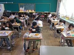 みんな集中しておいしい給食を食べていました。給食中は,とても静かに食べていました。6年生は静かにピースしてくれました!!