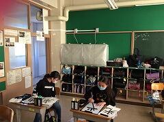昨日,3組と4組で校内書初展に向けて書写の授業がありました。