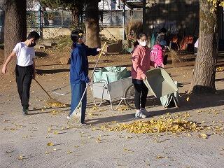 美化委員会の人たちや用務員さんが,落ちてきた葉っぱを拾い集めてくれています。衣替えは,しばらく続きそうです。
