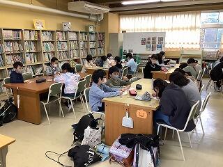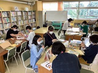 午前中に,約10名ほどのボランティアの皆様に集まっていただき,学校図書館にある本の整理や修理などをしていただきました。図書ボランティア直し隊の皆様による活動は,約2年ぶりとなります。