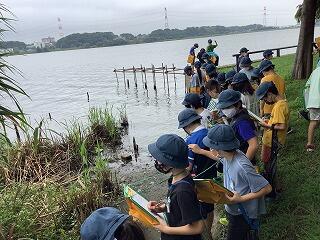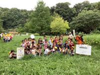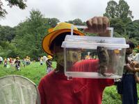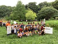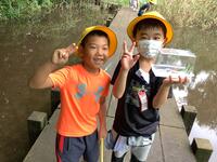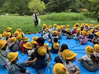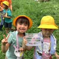 お話の後,いよいよ探検が始まりました。バッタやトンボを捕まえたり,花やいろいろな形の葉,ウシガエルの卵を見つけたりしました。また,湧き水を触ってみると「とても冷たい」と嬉しそうに教えてくれました。