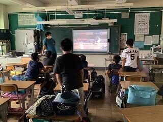 昨日の6校時にクラブ活動が行われました。あいにくの空模様のため,校庭で活動するクラブの中には,教室でプロ選手のスーパープレーを見て,これからの自分自身の活動に役立てようとしていました!!
