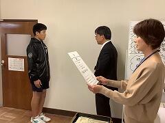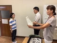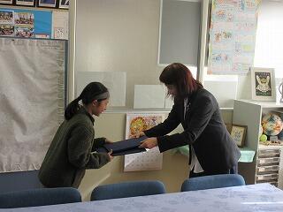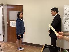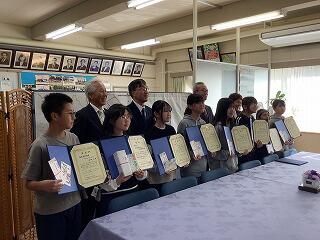 以前,租税教室の一環として行った,絵はがきコンクールの表彰が,13日(月)の昼休みに校長室で行われました。