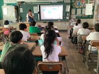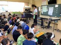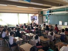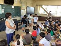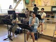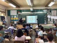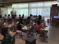 リコーダー練習会は体育館に集まり、実際に講師の方の生演奏を交えて学習する予定でしたが、気温が高く、熱中症対策のため、教室でオンラインでの実施としました。練習会では、学校で使っているソプラノリコーダー以外の音域のリコーダーを紹介していただき、大きさの違いに子どもたちはとてもびっくりしていました。そのほかにも演奏時の姿勢や息づかいなどを学びました。