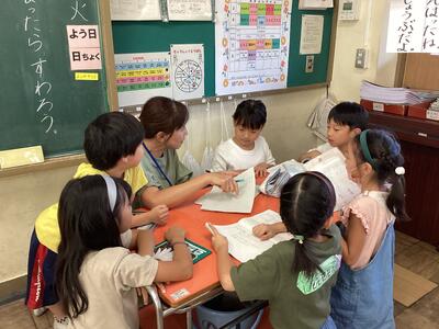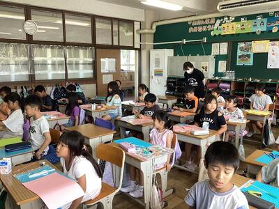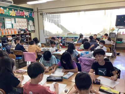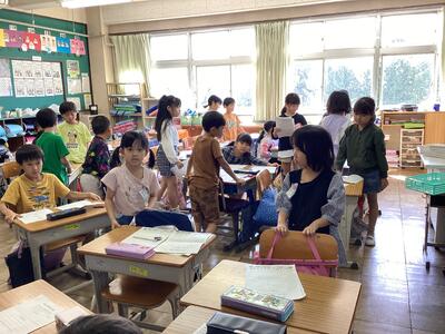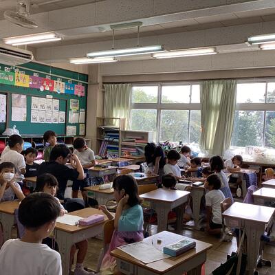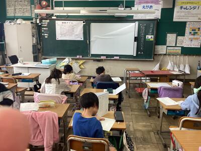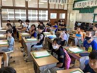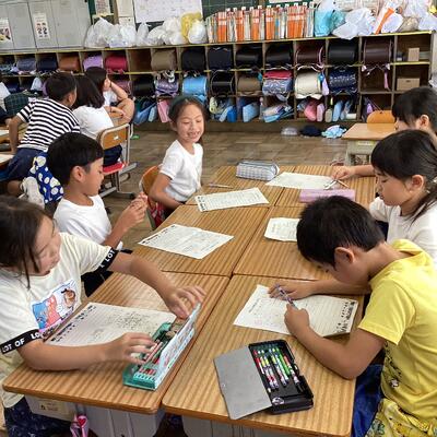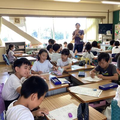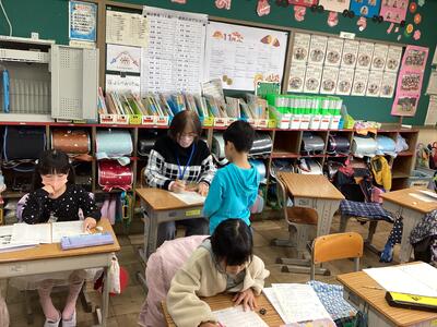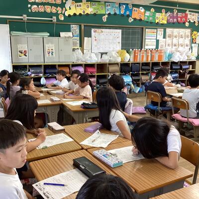 今日から毎週水曜日の生活・学習の時間は,サカスクの方々にご協力をいただきながら,かけ算のプリント学習を進めていきます。15分という短い時間でしたが,子供たちは集中して課題に取り組み,サカスクの花丸先生からほめられると,「プリント2まいできた!」「ぜんぶ〇だったよ!」と笑顔で喜んでいました。子供たちが,「できた!」「わかった!」という達成感が得られるように,今後も支援してまいります。