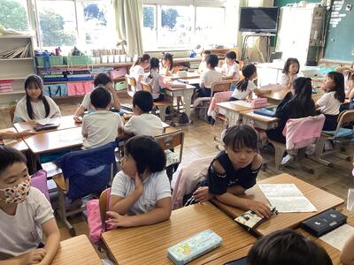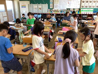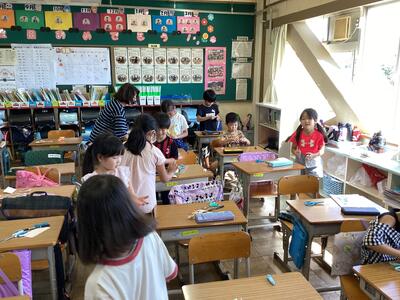 今日は1学期の最終登校日でした。各クラスでは,大掃除をしたり,夏休みの過ごし方について話したりしました。1学期には,体育発表会や校外学習などの行事や,久しぶりの水泳学習がありました。その中で,友達と協力して考えたり,活動したりする場面もたくさんあり大きく成長しました。毎日5年生は元気いっぱいでした。夏休みも安全に気をつけて楽しく生活してほしいと思います。