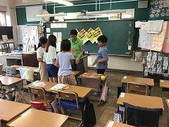 本校の通学路でも場所によっては,狭い道路や車の通行が多い道路もあります。これから長い夏休みを迎えますが,休み中も交通事故に遭わないように,学んだことをしっかり実践していってほしいと思います。