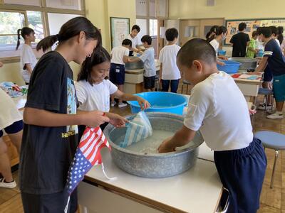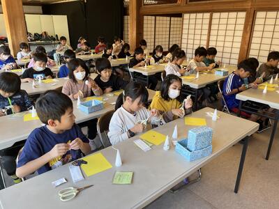 午前は,「千代紙ろうそく」「どろめんこ」「勾玉つくり」の3つに分かれて,体験活動をしました。自分だけの作品ができ,大満足の様子でした。
