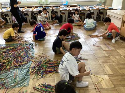 納得のいく作品にするために,並べ方を何度も試しながら,楽しそうに活動していました。