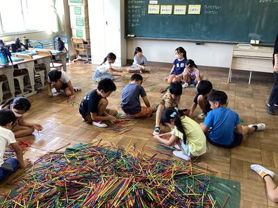 そして,班の仲間と協力して100杯,1000杯を数え合っている姿,楽しそうに課題に取り組む姿が見られ,とてもよい時間でした。