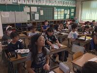 初日はまだまだ夏休み気分が抜けきらないような雰囲気もある中での始業式でしたが,着席したままでの礼の仕方など,真剣に式に臨む姿勢を態度で示せている子供たちもたくさんいました。