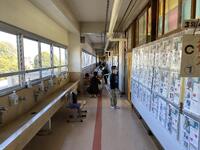 健康診断のための机や椅子を運んで並べたり,順路がわかりやすいように表示を貼ったりしました。
