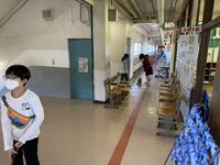 5年生では,給食の後に来年度入学予定の新1年生に向けて会場準備を行いました。