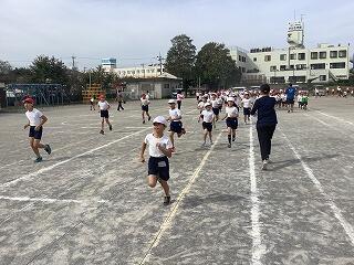 今年度から全学年が同じ日,同じ時間に練習ということで,3年生とともに中学年コースを走っており,新しい雰囲気の中で,下級生に注意しながら一人一人が一生懸命に走っています。持久走大会までの約1か月間,練習に励み,体力向上を目指していきたいと思います。