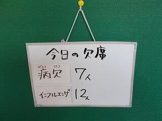 今日の欠席状況です。先週は1年生でインフルエンザが流行りましたが,今日は6年生で増えつつあります。