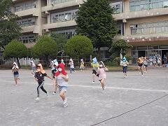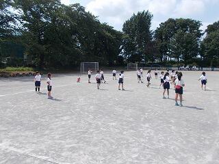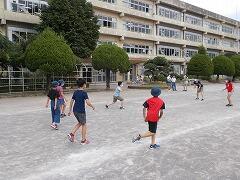 熱中症に気を付けながら,校庭で体育を行っています。