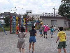先日,体育の授業で2年生がボールなげゲームをしていました。