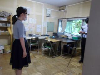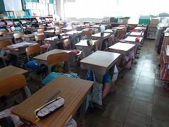 校舎を見ると,どのクラスも窓を開けて,カーテンを閉めています。