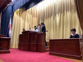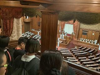 12月18日に校外学習がありました。午前中は国会議事堂へ行きました。入口から緊張感漂う雰囲気の中で静かに見学をし,テレビで見たり,調べ学習をしたりしたものを実際に目にすることができ,嬉しそうな様子が見られました。また,参議院特別体験プログラムでは,代表の子どもが議長や大臣,発言者(委員)として模擬委員会を再現してくれました。模擬本会議では,全員が国会議員として押しボタン式投票に参加し,法律を成立させる体験を行いました。