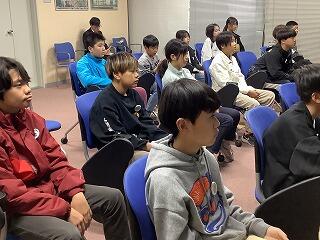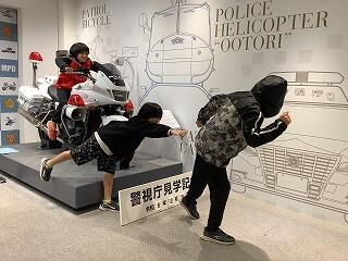 午後は,2グループに分かれて見学を行いました。警視庁では,警察の仕事や種類などについて,動画で学習し,警察参考室では,白バイに乗ることができたり,実際の事件で使用された拳銃や刃物を見たりすることができました。また,通信指令センターでは実際に110番に対応する場面を見させてもらい,緊張感ある様子が伝わりました。最高検察庁では,検察官とは何か,警察との違いは何かなど,検察の役割や組織,刑事事件の流れについて動画で学習しました。また,本物の手錠を見せていただき,付ける,付けられるといった貴重な経験をしたり,取り調べ室も見学したりしました。