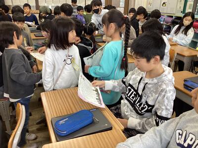5年生は、様々な方法で学んでいます。外国語や学級会や道徳では,みんなの前に立ち,自分の考えを発表をしたり、友達と意見を伝え合ったりすることを堂々と行う姿に成長を感じます。