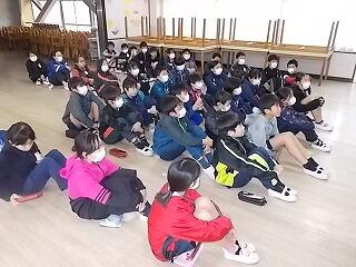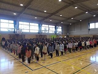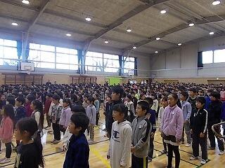 1時間目は始業式が体育館で行われました。体育館内とても冷え込んでおりましたが,子ども達は吹奏楽部の演奏に合わせて,元気に校歌を歌うことができました。