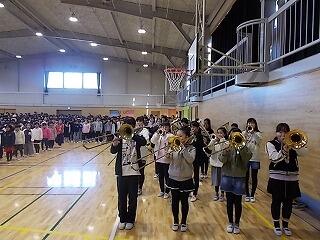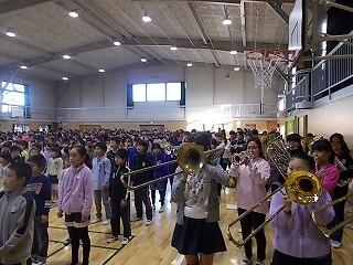 今年最後の校歌を元気に吹奏楽部の演奏に合わせて歌いました。