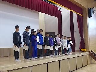 表彰 ①校内持久走大会 1位(各学年の男女1位)