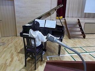今月の歌。音楽委員会の児童が指揮や伴奏を行ってくれました。