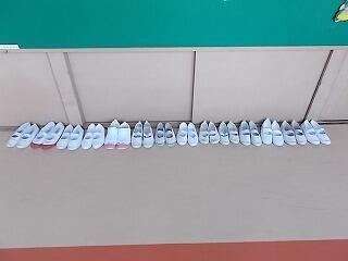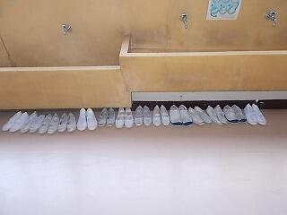 中学年のある学級の保健室前に並べてあった上履きの様子です。