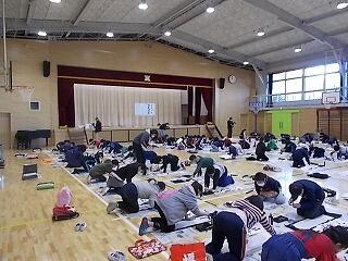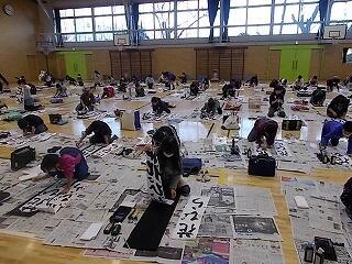 昨日の高学年に続き,今日は中学年が体育館で校内席書会を行いました。