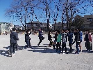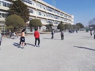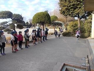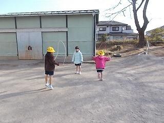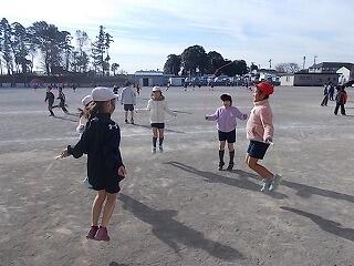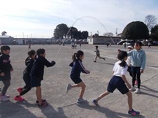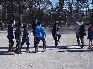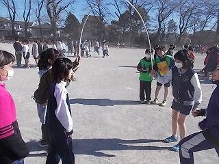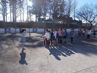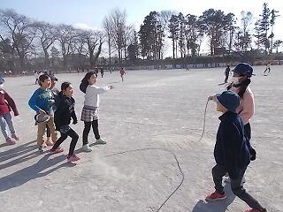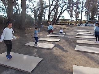 寒さに負けずに元気よく半袖・短パンで縄跳びをしていました。