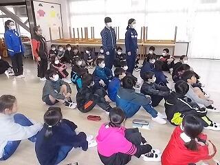 1月の生活目標「外に出て元気に遊ぼう」について,西村先生よりお話がありました。外に出て遊ぶと良いことが2つあるようです。