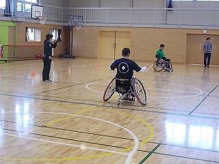 体育のキャッチバレーです。ボールをとってから真上に投げて,スパイクを打ちます。キャッチがあるので,体育が苦手な児童でも楽しめます。