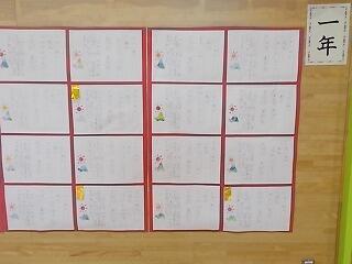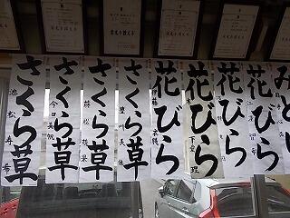校長室前に席書会で書星会賞に選ばれた児童の作品を掲示しています。