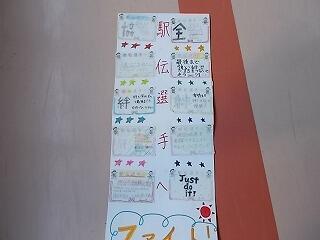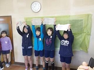 昨日は,多くの保護者の皆さまに朝早くから寒い中,応援していただき,また差し入れまでいただきまして本当にありがとうございます。そしてインフルエンザが流行る中,お子様の体調管理にも留意していただき,感謝申し上げます。6チーム全員が無事に絆の襷を最後まで一所懸命に届けることができ,我々職員も嬉しく思います。今後とも酒小運動部へのご協力・ご支援を宜しくお願いします。