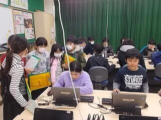 外国語の授業です。高学年は年間50時間しっかり学習します。