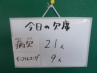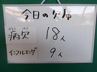昨日と比べ,インフルエンザは同じですが,病欠は3名減りました。