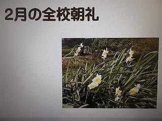 2月の全校朝礼ですが,インフルエンザの拡大防止のため,TV放送になりました。