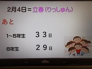 今週日曜日は「立春」になります。暦の上では春ですね。実際はまだまだ寒く,昨夜も雪がちらちら舞いましたが,登校に影響が出なく,安心しました。