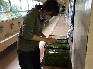 人数が少ないので,1人1匹ずつ贅沢に観察することができ,子供たちは興味津々でした。