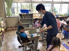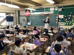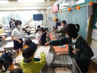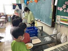 2年2組の給食の様子です。準備も手際よくこなしています。