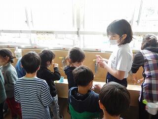 6年生にお手伝いしてもらいながら,一生懸命に活動しています。