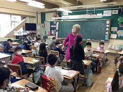 1年生のために,6年生が頑張っています!! 朝の準備や給食の片付けなど,1年生が困っていそうなタイミングで,6年生が助けにやってきてくれます。1年生の目線に合わせて,優しく声をかける6年生,やれることがあるときには,しっかりと見守ってくれる6年生,一つ一つの行動から,6年生の温かさを感じることができます。