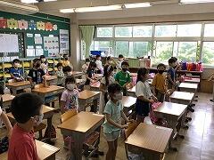 今日,6月の全校朝会がありました。感染症対策が緩和されたことで,子どもたちは気持ちよく校歌を歌うことができました。